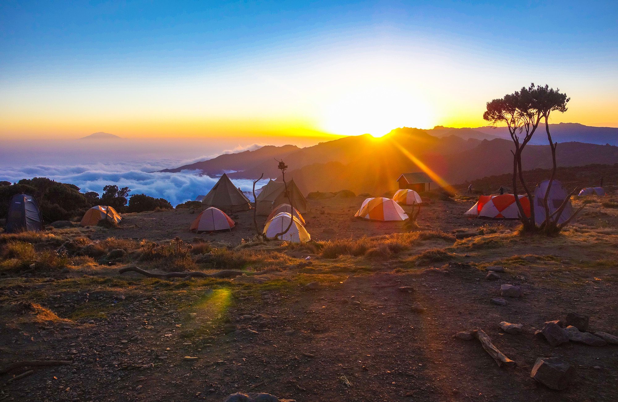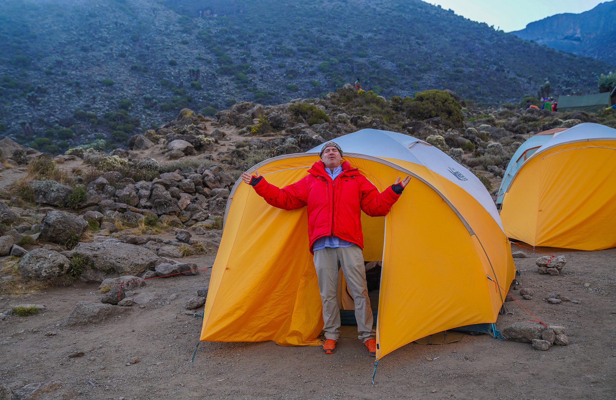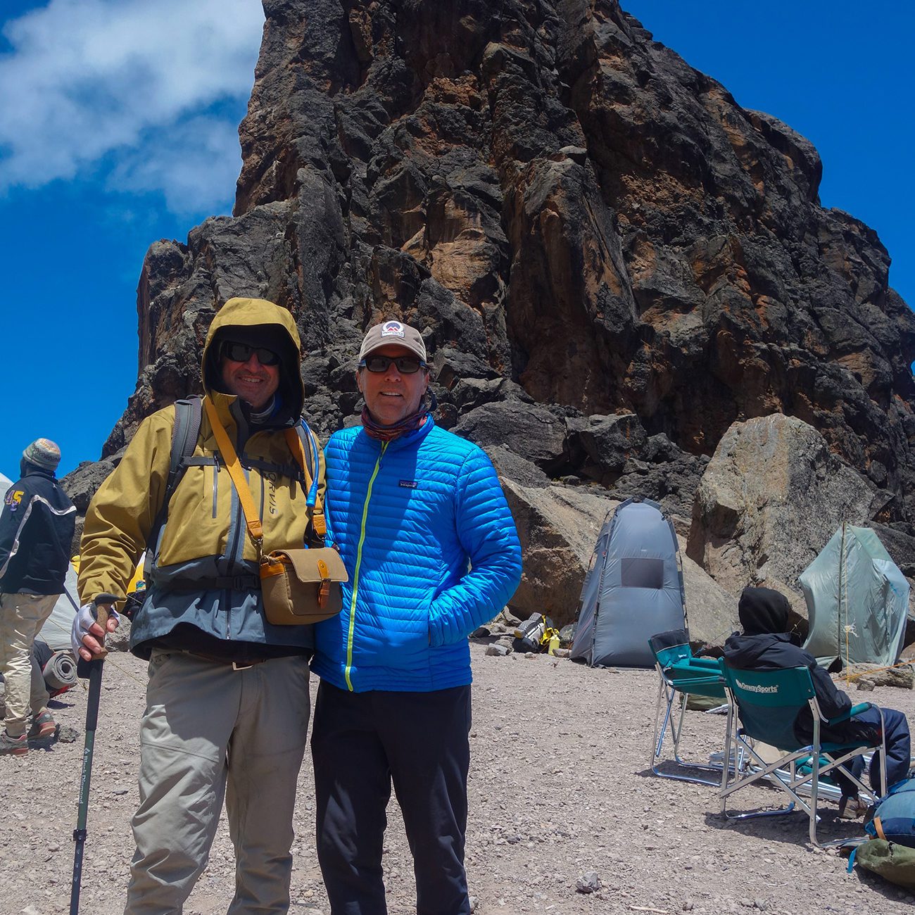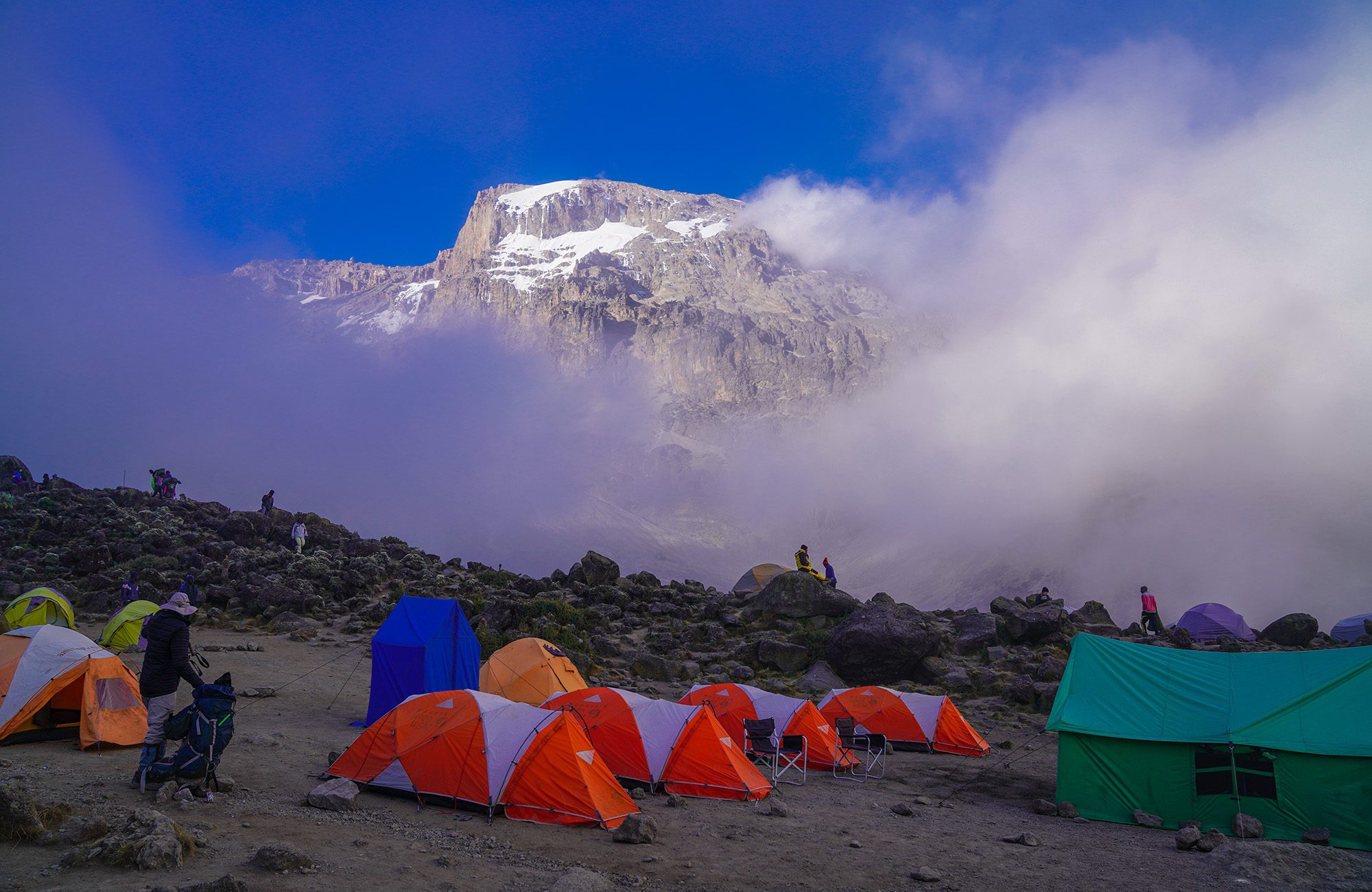 While on the mountain, camp in comfort in large, spacious tents, with cots and down bags. Dining tents along with private toilets are provided daily. Enjoy hot meals prepared with fresh ingredients by our camp’s chef. Our private safari camp offers luxurious traditional safari style accommodations all while getting a front row seat to some of the most prized game viewing on the continent.