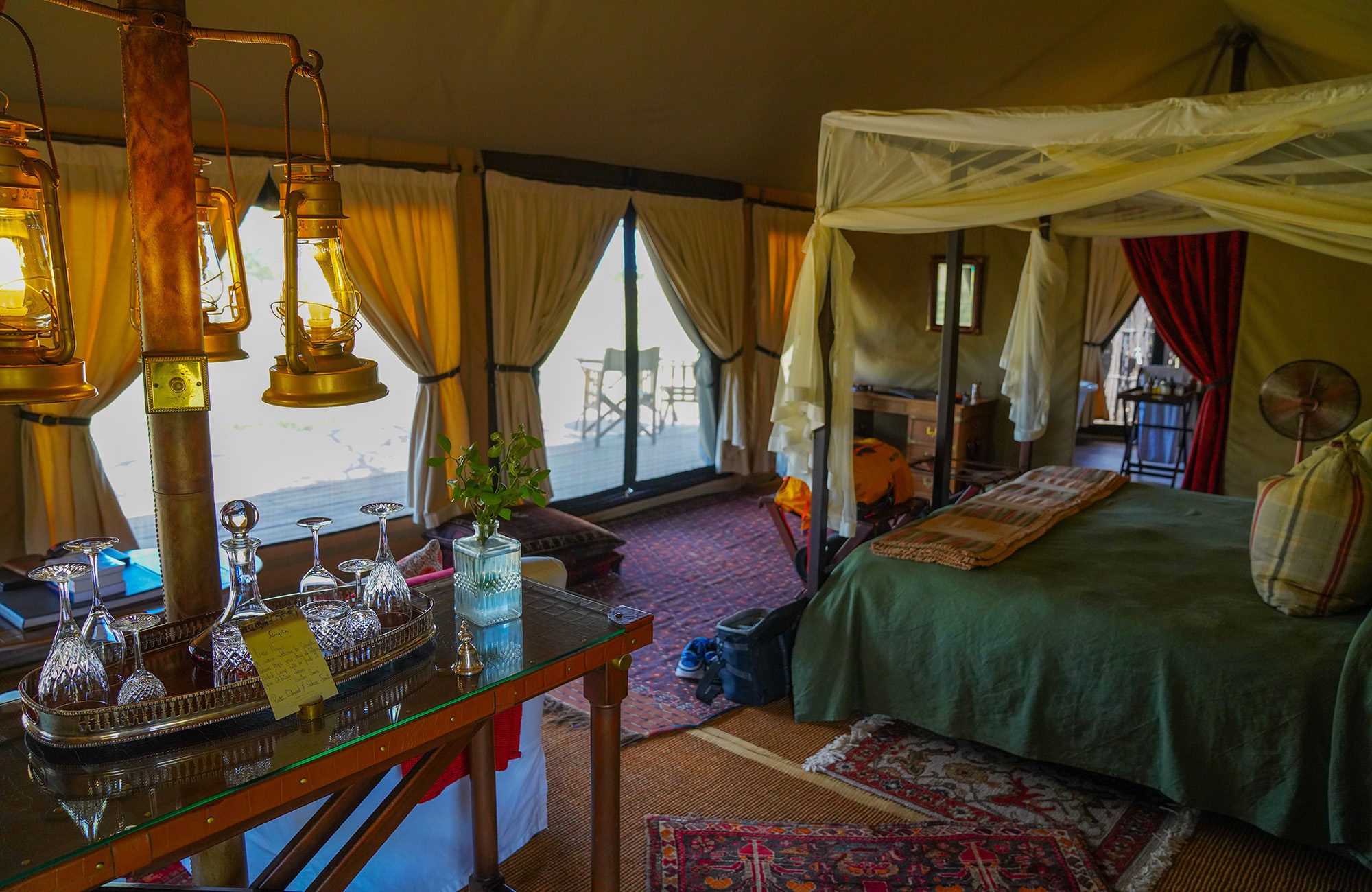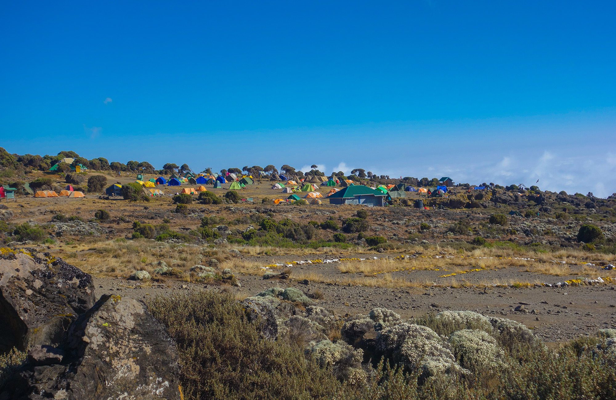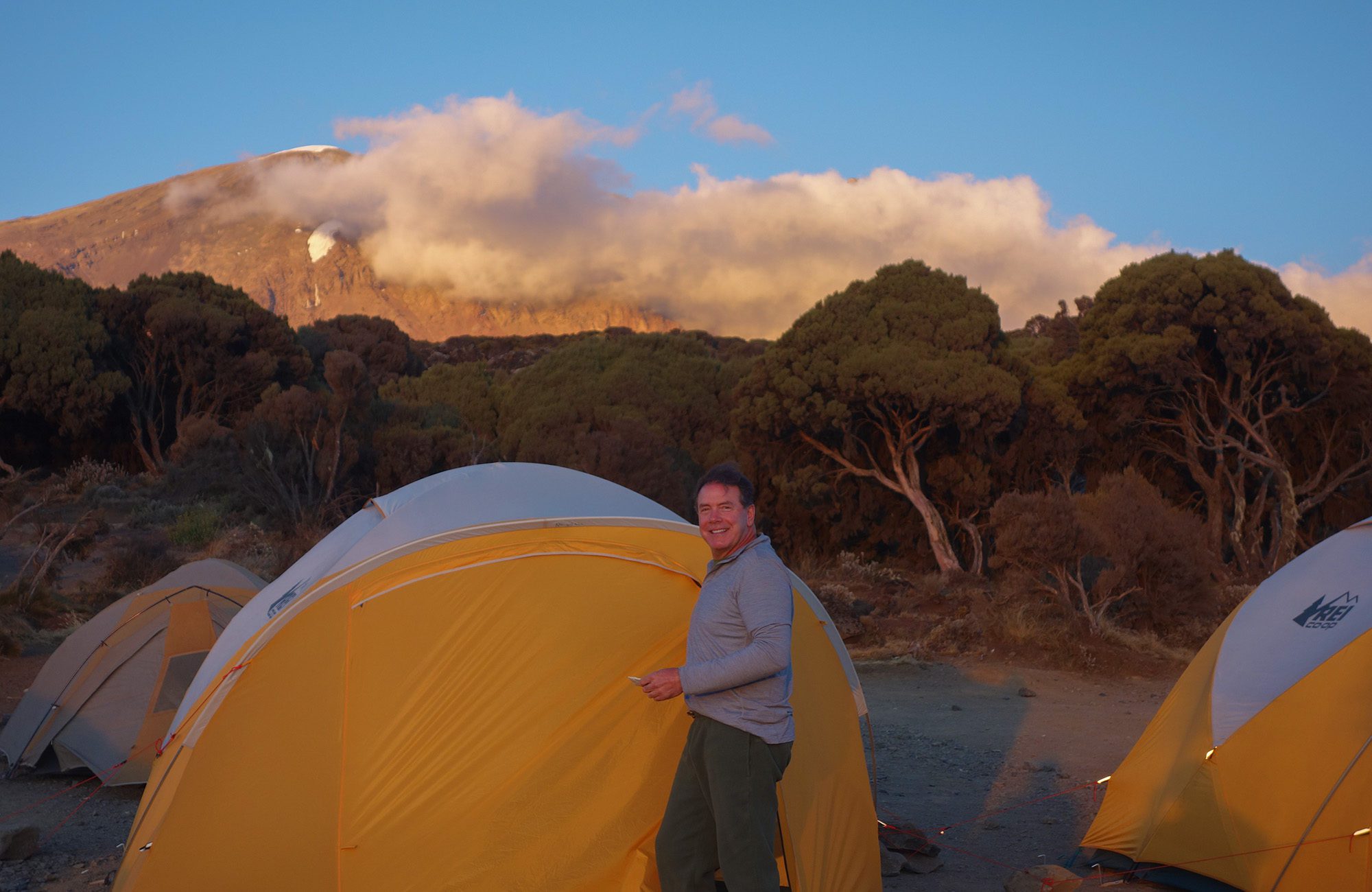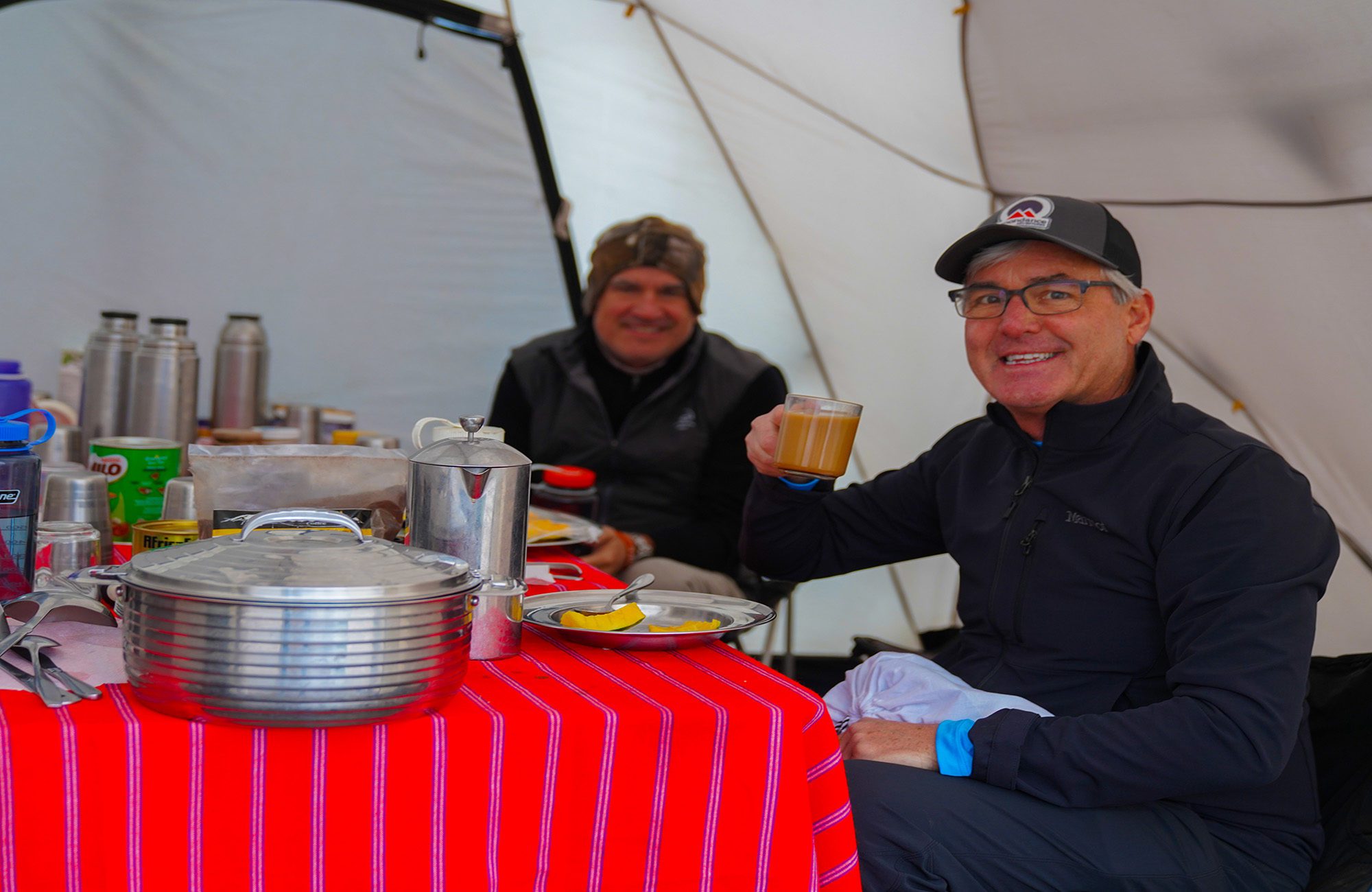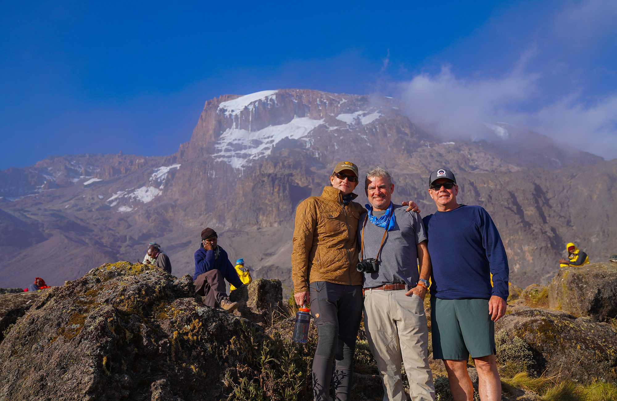 While on the mountain, camp in comfort in large, spacious tents, with cots and down bags. Dining tents along with private toilets are provided daily. Enjoy hot meals prepared with fresh ingredients by our camp’s chef. Our private safari camp offers luxurious traditional safari style accommodations all while getting a front row seat to some of the most prized game viewing on the continent.