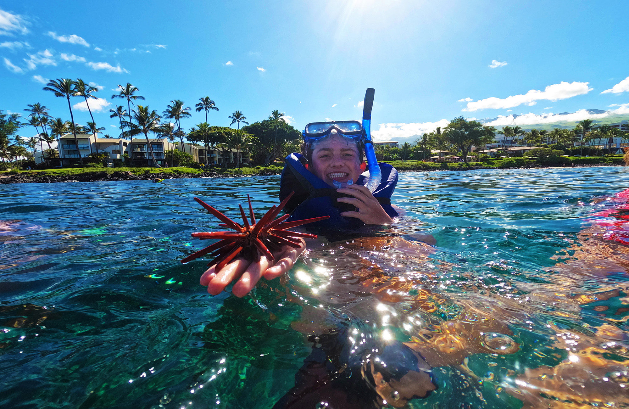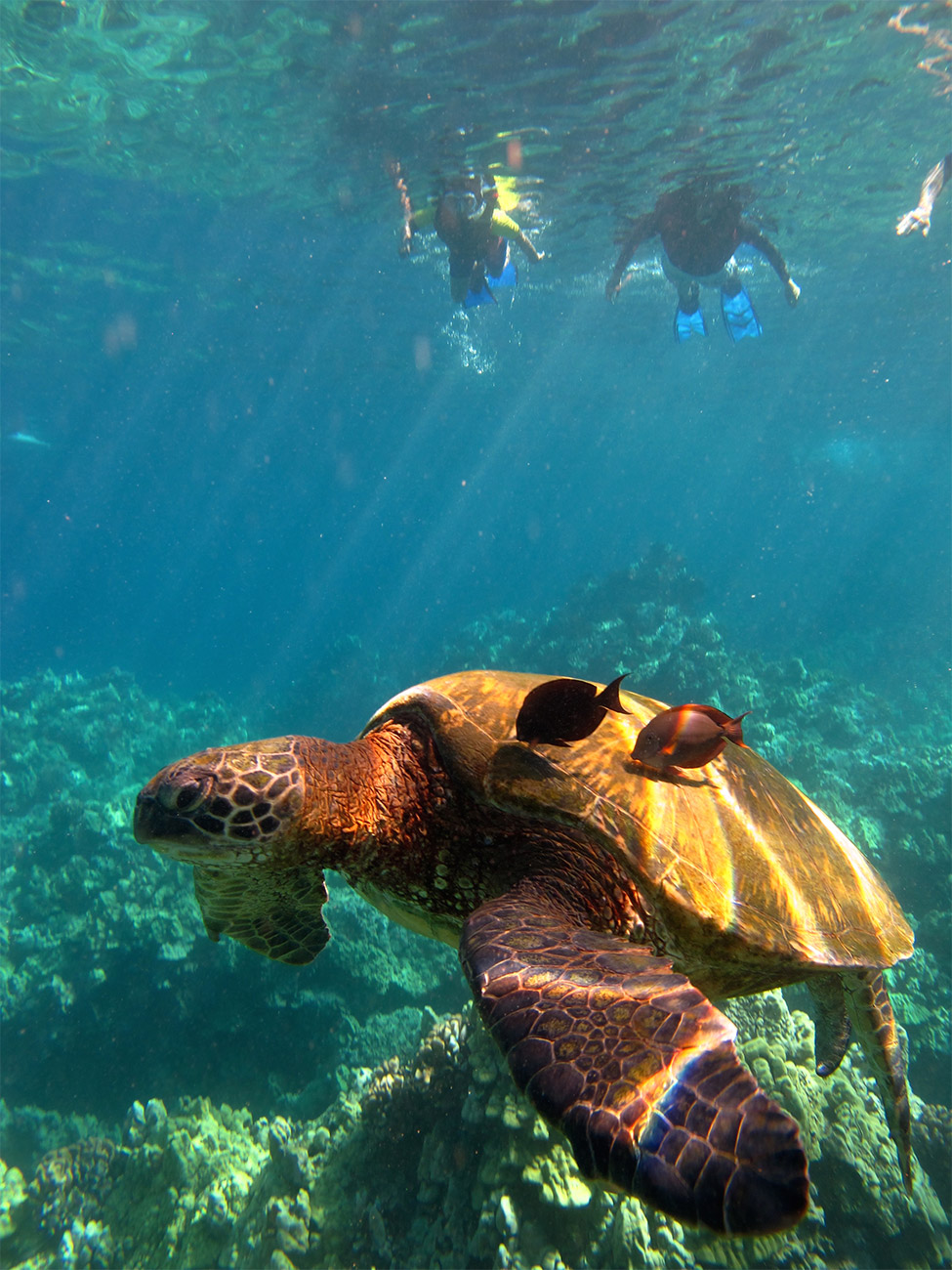 Dive beneath the waves to the technicolor reefs and coral forests of the Molokini Crater. This world famous destination is a marine life sanctuary, and features some of the clearest waters in the South Pacific. The curve of the islet protects its waters from the open sea, making it the perfect place for wildlife to flourish. The crater is one of three volcanic calderas in the world, and it is home to over 250 species of fish. Put on your flippers and goggles and glide through marine magic in an unforgettable snorkeling safari.